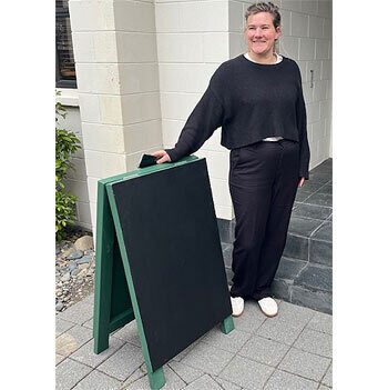 Tessa Ebbers happy with the 2 sandwich boards we made for the Club.Made between Rat Trap orders.