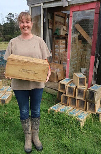 Great Barrier Island unofficial "rat lady" when she's surrounded by trap boxes? Well, a better trap box naturally.