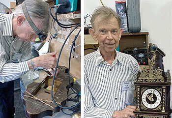 resident clockmaker, Michael Cryns, restored a Dutch clock to perfect working